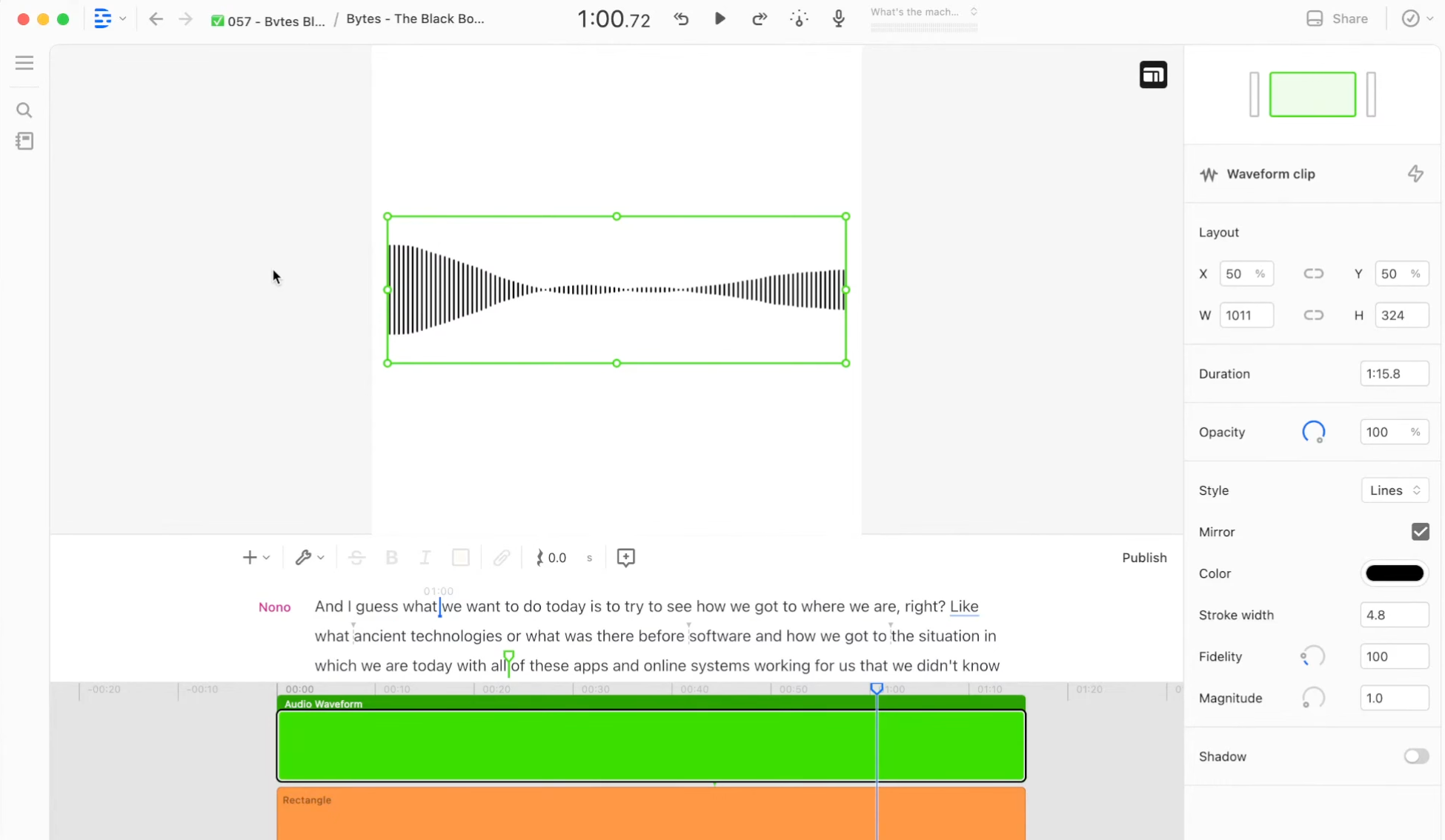 C’est juste des formes d’onde animées associées à de l’audio — en gros, une version vidéo de ton podcast parfaite pour les réseaux sociaux. Tu sais, ce genre de clip que tu vois sur Instagram ou LinkedIn où la voix de quelqu’un joue par-dessus une forme d’onde qui rebondit avec l’audio.