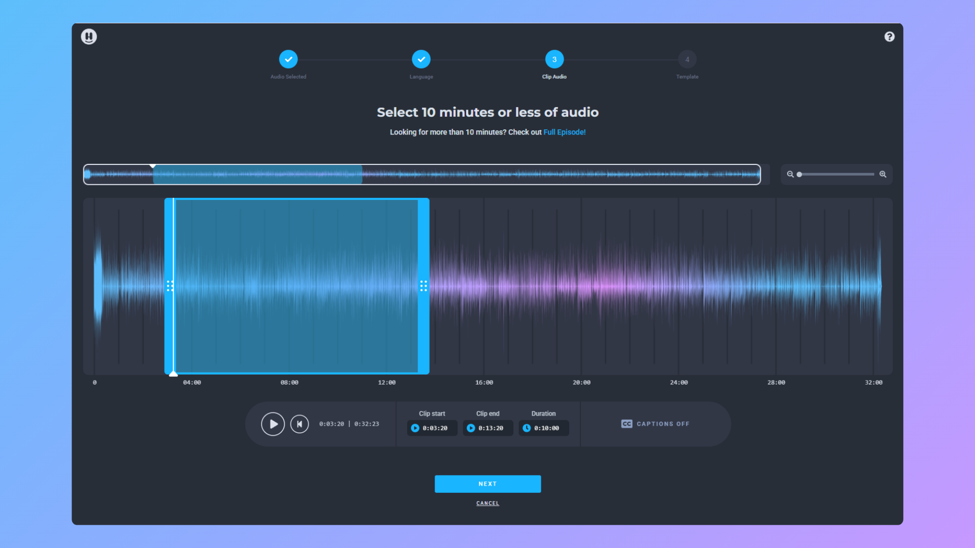 C’est plus un outil vidéo généraliste qu’une plateforme spécifique aux podcasts. Tu peux créer des audiogrammes avec leurs templates, mais t’auras aussi des outils pour les sous-titres, l’enregistrement d’écran, et plus.